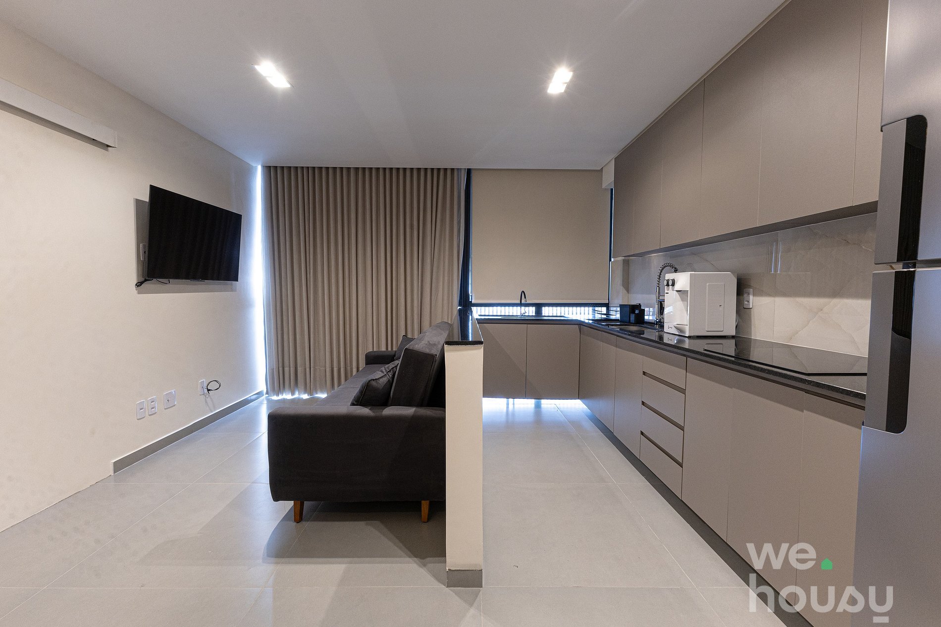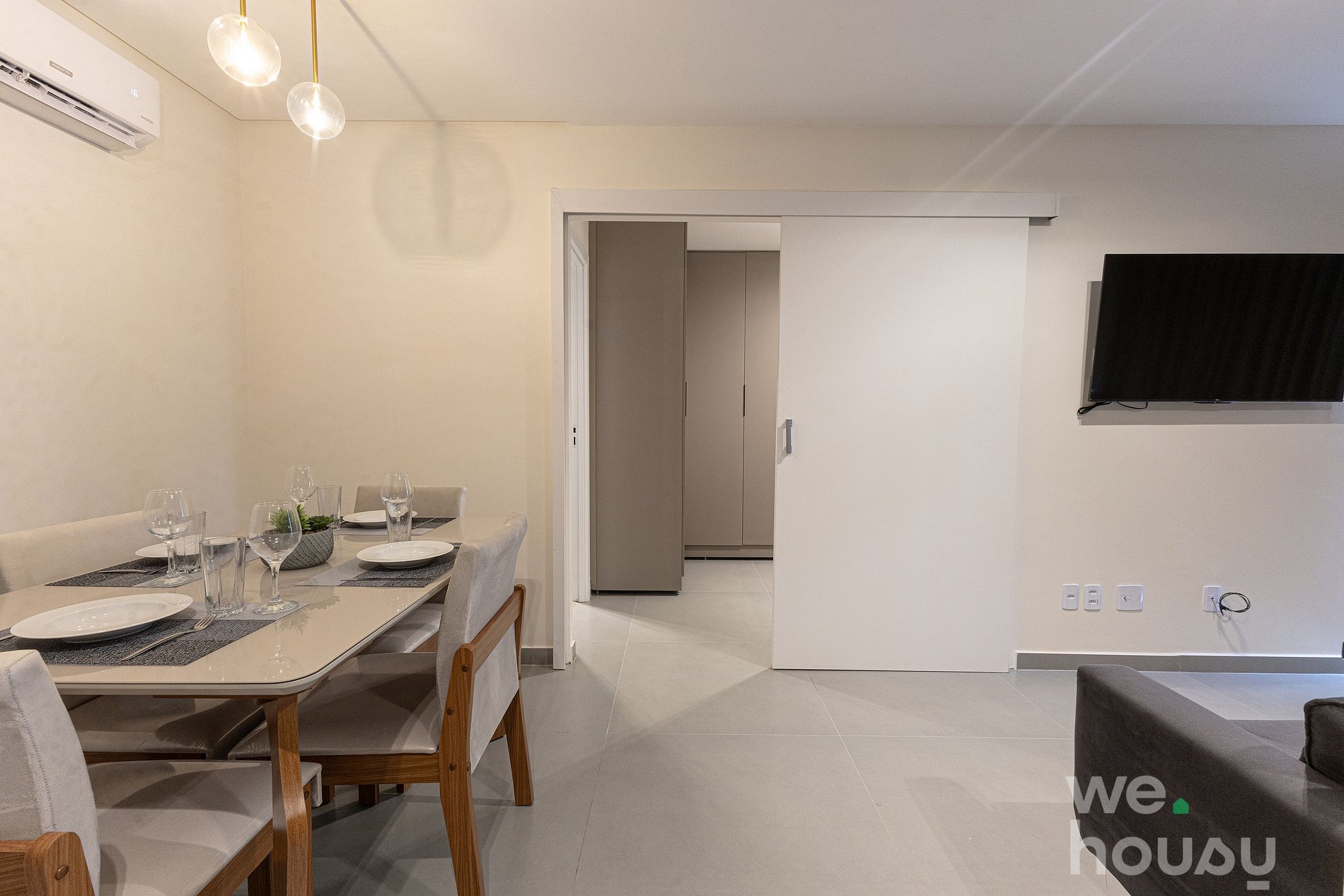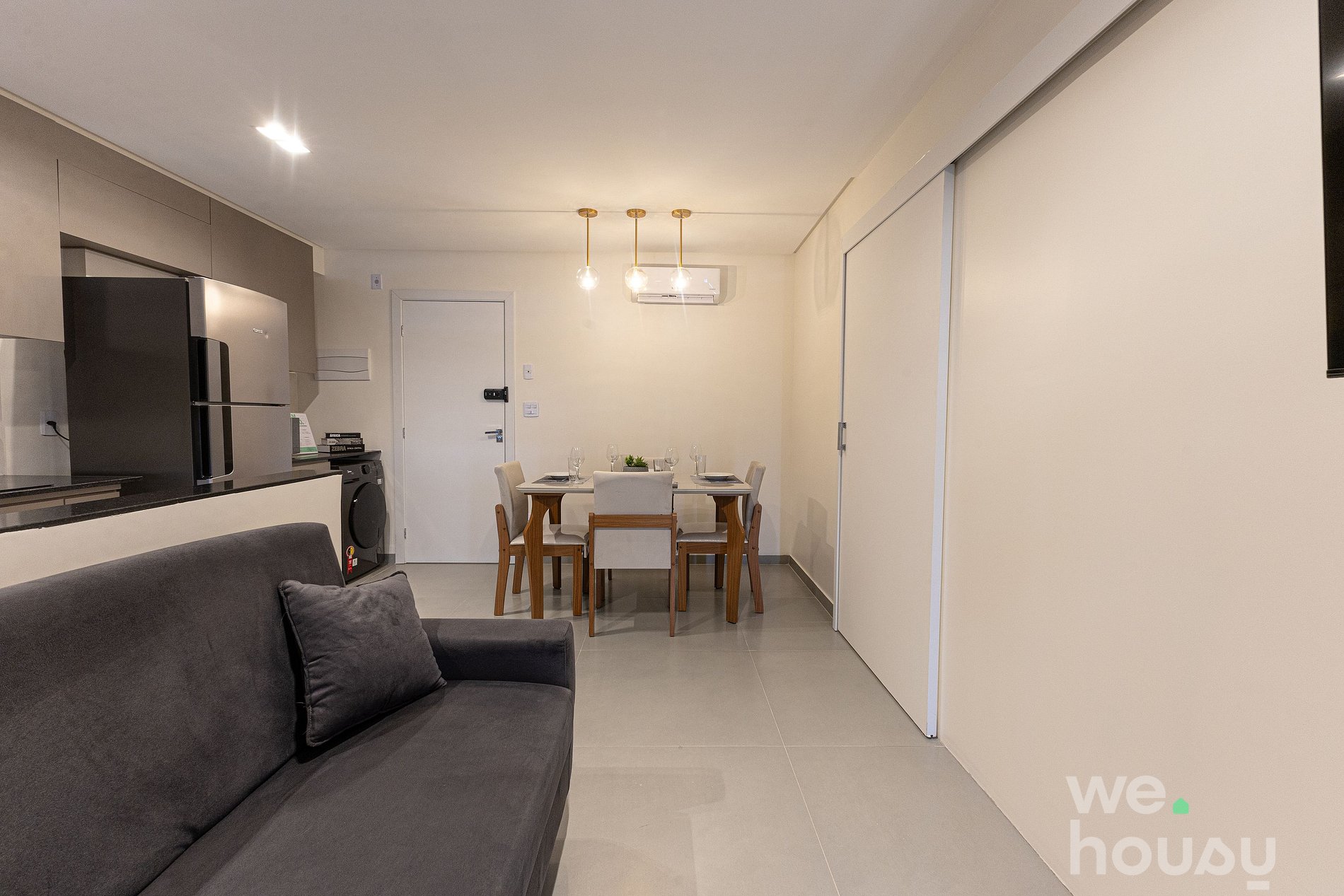 Nossos apartamentos são modernos e funcionais, equipados com Wi-Fi, Smart TV, ar-condicionado, toalhas, roupa de cama completa e uma cozinha prática, com geladeira, micro-ondas, cooktop de indução e utensílios.